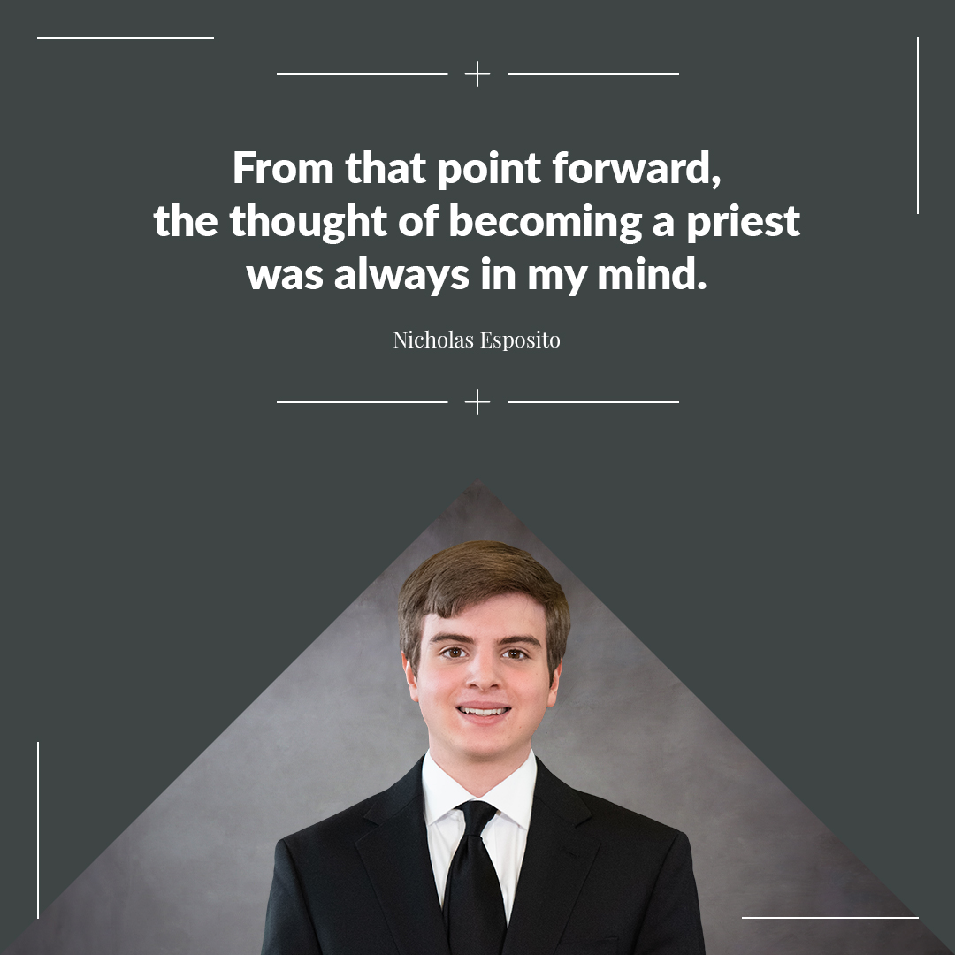 In December of my senior year of high school, I applied to College Seminary. Going through the application process showed me that the church really wants to make sure they are getting solid, great quality men to serve the church as holy priests. I eventually finished the process and submitted my application. One evening my phone rang and it was the vocation director calling. He informed me that I was accepted into seminary. I was overjoyed when I got the phone call because it was the first big achievement in my dream of serving Jesus Christ as a priest. God willing, I am a priest one day, I will always have these fond memories of my childhood to look back upon and thank God for his many blessings in my life so far.