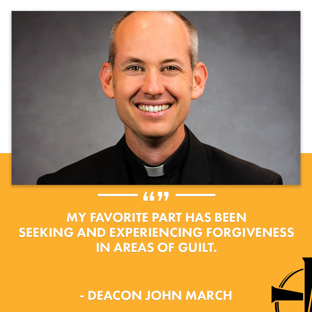 Prior to Lent, one of our deacons encouraged us to read and ponder Scripture or spiritual reading four minutes a day. “Not 3, not 5 – four.” I liked and took the challenge. Two people had generously given me the same devotional, something I am not usually drawn to, but re-considered after second gifting – plus it’s short. So I have been reading it and pondering what it says to me in the area of forgiveness (a recurring theme of Mass readings before Lent) in these “bite-size” ways. My favorite part has been seeking and experiencing forgiveness in areas of guilt.