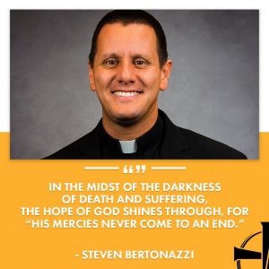 In the midst of the darkness of death and suffering, the hope of God shines through, for “his mercies never come to an end.” We now celebrate how Jesus did not hesitate to enter into the darkest portions of sinful humanity and give Himself up to be crucified for our sake. And He rose! He has won the victory! No matter how dire the suffering, our Lord stands before us as the Risen One, showing that good can come from the worst of circumstances.