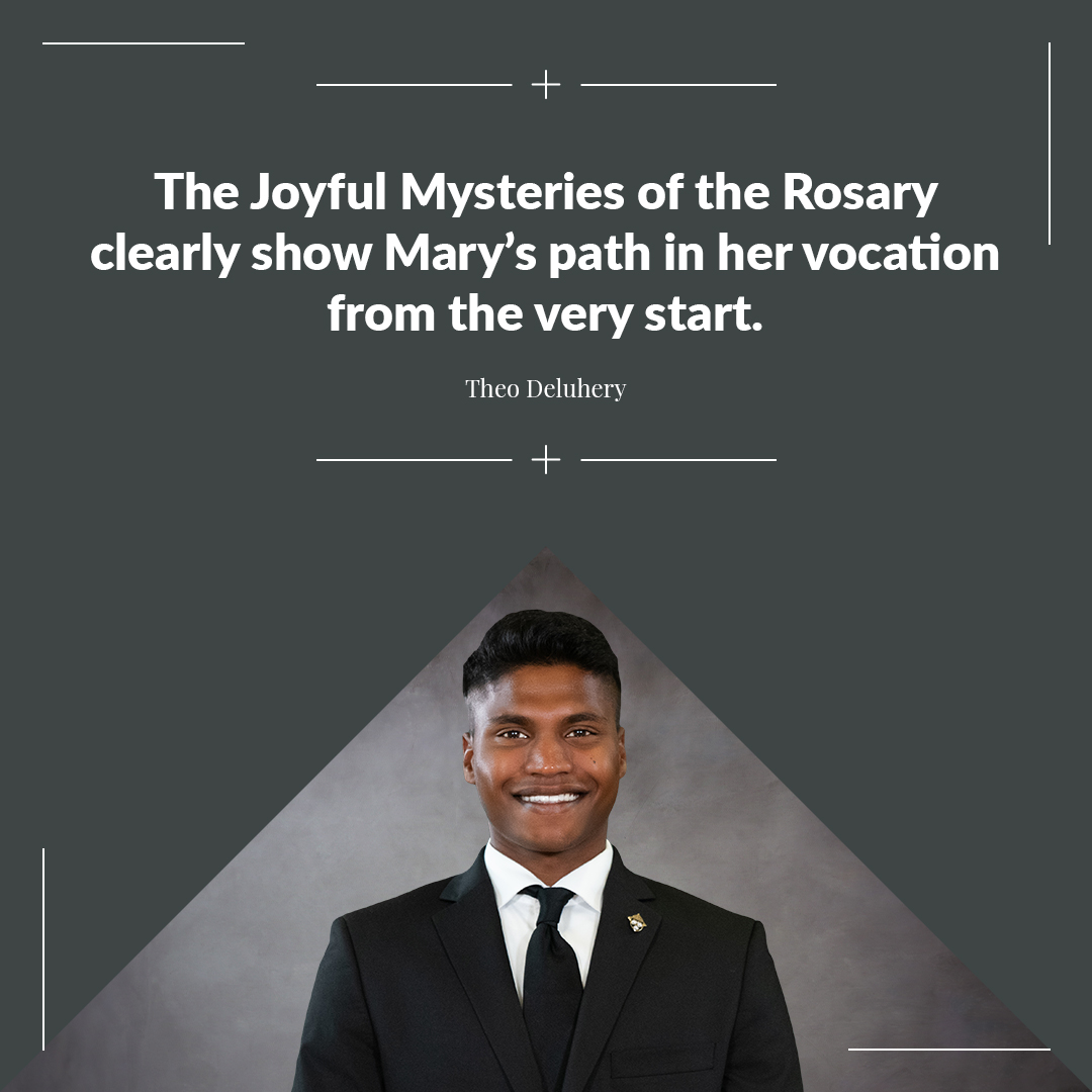 The Second Joyful Mystery is The Visitation. This is one of my favorite mysteries because of the fruit of this mystery, which is Joy in Friendship. I feel that we all can relate to this mystery in every vocation, because, without our friends we wouldn’t be able to push through the scary and stressful times. I can speak with confidence that friendship is something that I am very thankful for in the seminary. St. Elisabeth was Mary’s cousin, but also her friend. We can see that without hesitation, Mary went to visit Elisabeth when she found out about her pregnancy; the joy shared between the two women was a result of Christ’s presence. Last semester I had severe tendonitis, if it wasn’t for my brother seminarians driving me to class, reminding me to ice my ankle, and making sure I didn’t overdue myself, I would not have been able to get through midterms. I want to remember those friends who have pushed us to say yes to our vocations, who have encouraged us, and who have had joy in watching us grow in God’s plan for us and to return that same feeling of joy to them.