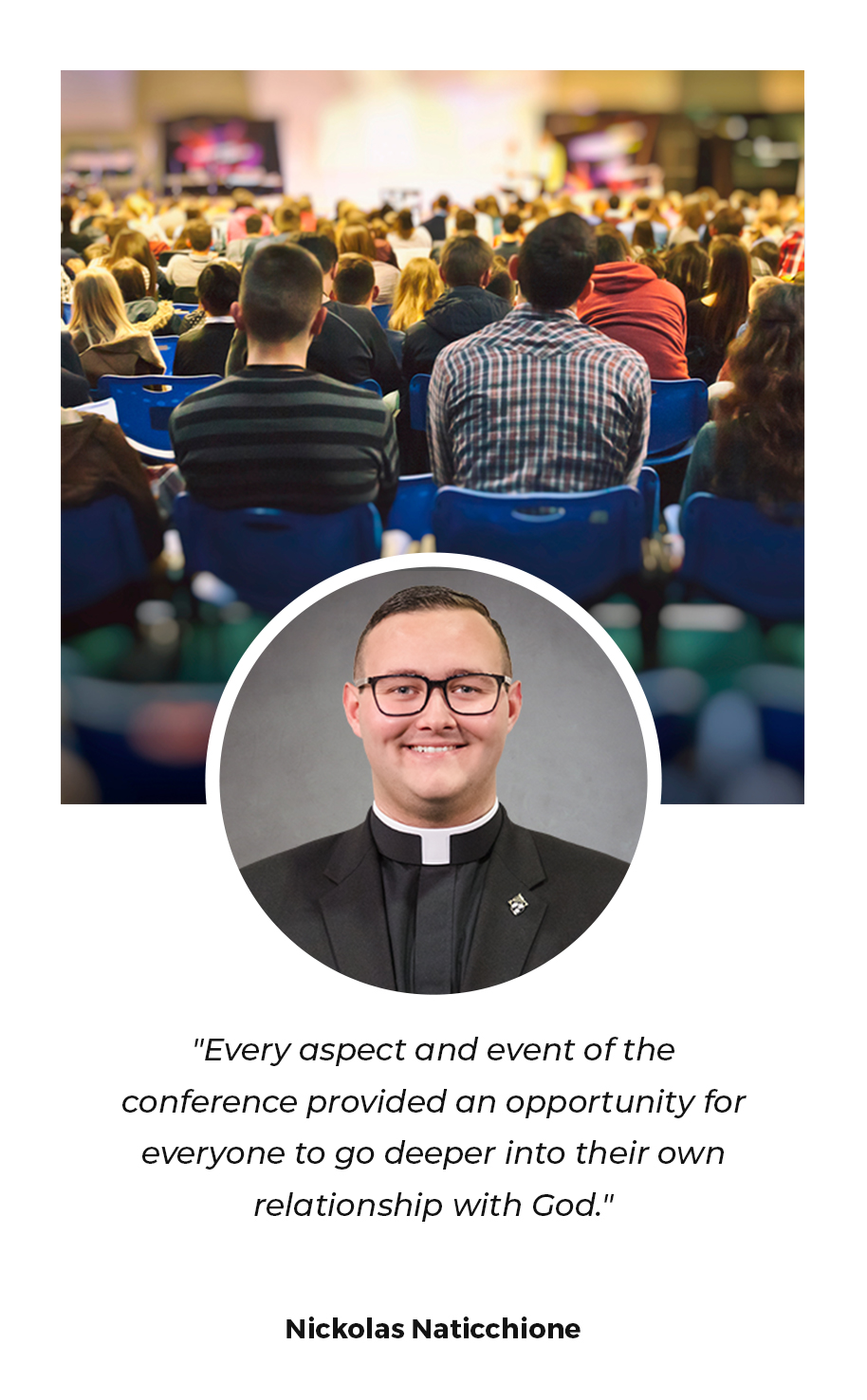 During my summer assignment in the Parish of St. Monica in Atlantic City I had the opportunity to go to a Steubenville Conference with the Franciscan Sisters of the Renewal and young adults from the parish youth group. This weekend trip was filled with graces for everyone involved: the youth, the chaperones, and the many priests and religious who were present. Every aspect and event of the conference provided an opportunity for everyone to go deeper into their own relationship with God. Events of the weekend included talks from well-known Catholic speakers (including Jason Evert and Paul J. Kim), small group discussions, times for community building, opportunities for Confession, opportunities for Adoration of the Blessed Sacrament, and, at the center of everything, the celebration of daily Mass. The greatest grace for me however did not necessarily come from one of these individual events, but rather came from the experience of being with 2,000 young Catholics who willingly and enthusiastically chose to spend a weekend of their summer with God.