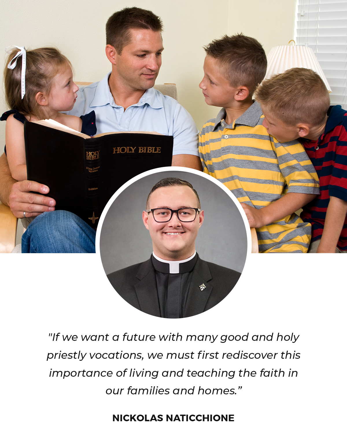 Overall, if we want to fix this crisis of vocations, we all must faithfully live out the universal call to holiness through discerning and living our individual vocations of how God is calling us to serve Him. The Christian life has never been easy to live, but this is especially true in our modern society, in which Christianity is viewed as being opposed to that society. We all need to turn to the truth and the love of God, which we are called to live ourselves and share with all peoples as we live our vocations here in this life on Earth. So, when we are asked to “pray for vocations” and to “build a culture of vocations,” let us pray not only for vocations to the priesthood, but for more faithful marriages lived as vocations, so that spouses and parents can build the domestic church in their homes and form a culture of vocations that leads our youth to recognize that God has a plan for each of them in how they are called to live a holy life and get to heaven.